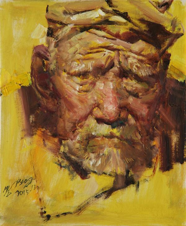 郭北平,《黄土地的老人之九》,布面油画,60cmx50cm,2015年 奥地利艺术史家李格尔(Alois Riegl, 1558—1905)的艺术史研究中有一个关键词:艺术意志。这个概念是指一个时期的风格特征,来自于一种内在的冲动,在德语中称为艺术意志。李格尔的艺术意志论受到了潘诺夫斯基的批评,在潘氏看来,应该把两种意志分开,一种是艺术家个体无法抗拒的本性的直觉;一种是艺术家主观的决断。他认为,一个时代的艺术批评可以使艺术意志得到表达,但无助于我们去理解作品。对于作品的理解应该引入一个更加宽泛的概念,在一切艺术品中隐含这一个深层的结构,这个结构可以类比精神生活中相互冲突的两个层面:第一个是精神的建构活动,体现在艺术家再现事物的理解方面,另一个是对事件不稳定性的感受的能力。李格尔的艺术意志论可以理解为艺术家的风格冲动,而潘诺夫斯基对于艺术意志的细分,可以揭示出艺术家的形式创造的冲动,既体现了他对于事物的感受能力,也体现了他的精神建构能力。由此,艺术语言的探索冲动,就是一种感受对象、表现对象、呈现主体的综合性艺术思维的能力。