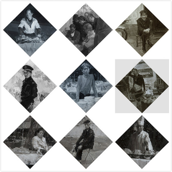 殷雄,《上海往事》,布面油画,200cmx175cmx2,2017年 第二部分、形色之力: 形笔如塑,油彩如虹。油画富于质感与温度的形色质料,跬成丰厚的艺术表现力,塑造着一部感心弘愿的文化史篇。 作者(9人):妥木斯,费正,邱瑞敏,王克举,金田,张新权,顾黎明,申玲,刘商英