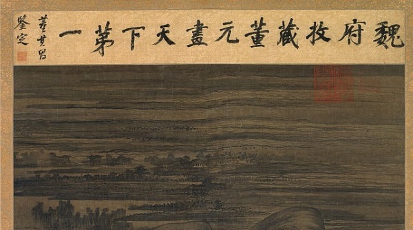 五代赵幹《江行初雪图》局部台北故宫博物院藏 关于这幅现藏日本西宫市黑川古文化研究所的历史名迹《寒林重汀图》的作者到底是谁,在学术界是一个并没有定论的争论。董其昌认为,此画不仅是五代南唐画家董源的真迹而且还是董源的杰作,并题跋了“魏府收藏董元画天下第一”(董元与董源相通),而这个观点并不为后人所接受。张大千认为,《寒林重汀图》不是董源的作品,而是赵幹的作品——赵幹也是五代南唐的杰出画家,他在后主李煜朝时为画院学生,擅画山水、林木、人物,长于构图布局。启功支持张大千的观点,他说张大千“这个论断十分有力,《江行卷》(即赵幹《江行初雪图》现藏于台北故宫博物院)今有精印本,互相印证,自是有目共睹的。”启功说:“记得五十年前在故宫院长马衡先生家看画,在座的有张大千先生,张先生向我说起《寒林重汀》,以为应是赵幹的笔迹。”所以,现在有些出版物上将《寒林重汀图》的作者标明是董源(传),也有的标明是赵幹(传),并没有定论。
