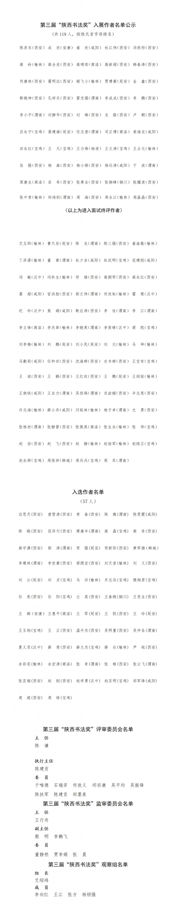 第三届“陕西书法奖”初评、复评结果公示