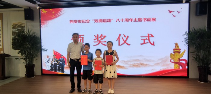 西安市双拥办常务副主任、西安警备区政治工作处主任赵宣伟宣读获奖名单 赵宣伟宣读此次书画展获奖名单,本次活动共评选出少儿组以及成人组书画类奖项36个,并且有15个单位荣获优秀组织奖。各位领导嘉宾向获奖者颁奖并送上鼓励和祝福。现场市民朋友们向获奖者喝彩,纷纷鼓掌祝贺。开幕式结束后,展览现场书画爱好者们欣赏作品,时不时点头称赞,或驻足沉思……