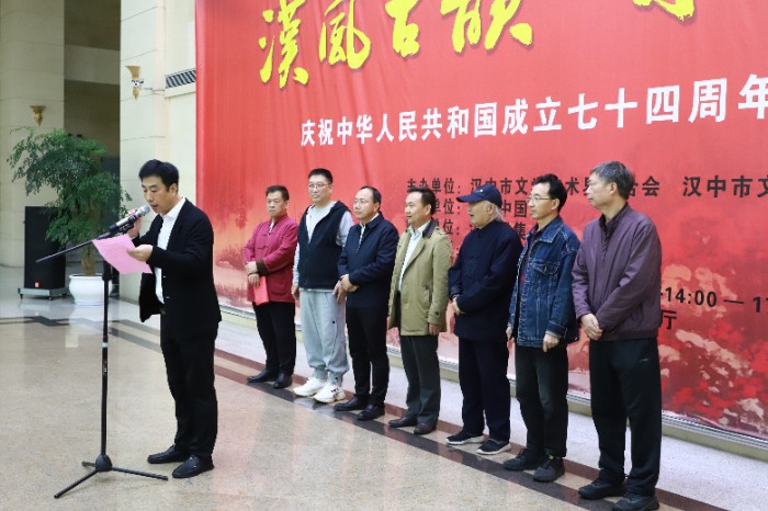 张汉红致辞指出,在中秋传统佳节和国庆节来临之际,联合举办庆祝伟大祖国74周年华诞画展,是认真贯彻落实习近平总书记来汉考察重要指示精神的举措,也是为汉中群众欢庆“双节”奉献的精神食粮,同时也是汉中中国画院年度创作力的一次重要展示。作为公共文化服务主阵地的汉中市文化馆,始终以弘扬、传承中华优秀传统文化为己任,也多次组织国画院的老师们走进基层、深入生活,开展文化志愿服务,进行艺术普及、捕捉创作灵感、激发创作热情。下一步,将持续守正创新,自信自强,为全市公共文化服务高质量发展贡献群文力量。