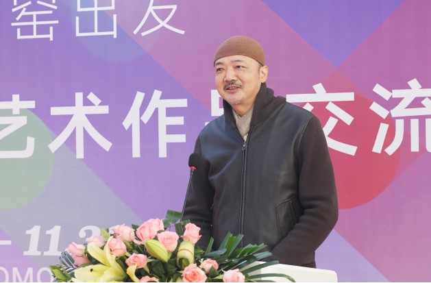 朱尽晖在讲话中对各位嘉宾出席本次展览表示热烈欢迎。 他指出,自古以来陶就伴随着人类的发展,人类从蒙昧时代进 入到文明时代的标志之一就是陶的产生,无论是两河流域、 中国的仰韶文明还是其他区域古老的陶瓷文化,它伴随着我们的生活,生生不息。 因此今天在这里讨论从耀州窑出发,就是关注人类文明的进程。同时,在新时代怎么样能够实现古老艺术的转化和创新,这不仅是每位艺术家要面临的,也是艺术为生活所要关注的问题。西安美院 1957 年就开始了陶艺的创作,今天,这样的展览怎样与耀州窑、与文明对话? 怎样在人工智能、元宇宙的时代,将陶艺的创作、教学和活动有机结合?此次展览的嘉宾有艺术家、教育家,也有博物馆和陶瓷相关企业的专家,大家从大江南北汇集于长安共叙陶艺这一永恒的话题,讨论在不同的语境下对陶艺进一步创作和研究的可能性。从这一点上说,这个展览显得意义重大,希望大家能够在此次中国美协陶瓷艺术委员会全方位的指导下多交流,对未来我们陶艺教学、创作与研究提出新的见解,也期待未来推进更有学术性和影响力的展览和活动。