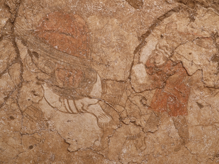据陕西省考古研究院研究员李明介绍,M13墓主康善达,曾任左骁卫亲卫、东宫乌城监丞、咸阳监等职,系初唐时代的马政官员。咸亨二年(671)终于原州之私第,咸亨四年(673)迁葬于咸阳洪渎原。据墓志记载,康善达之父亦任牧监,家资饶富,“谷量牛马,山藏丹宝”,很可能是原州(今宁夏固原)粟特人。墓道壁画所绘的驯马、牵驼者皆为胡人形象,或许与墓主人的族属和生前生活有关。