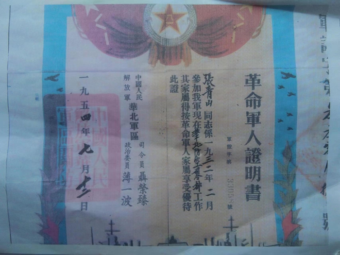 张青山相关资料 其实,红四方面军在陕南建立根据地和北上长征时,早已在略阳县麻柳铺一带播下了红色种子。 1932年2月居住在麻柳铺腰庄村余家沟的张青山,由于三兄弟贫困交加,年仅13岁去镇巴、紫阳贩茶途中,得知红四方面军在川陕建立根据地,就主动参加了红军,跟随红四方面军长征至陕北延安,参加了解放战争。1954年35岁的张青山在华北防空司令部工作,职务团长,华北军区司令员聂荣臻、政委薄一波签发“革命军人证明书”,20世纪90年代末逝世后葬于北京八宝山革命公墓。一直居住在麻柳铺余家沟,同父异母的胞妹詹秀英前往参加葬礼,并带回了证件。 居住在麻柳铺腰庄村沙地湾组的杨宏兴,1934年也参加了陕南根据地红四方面军,新中国成立后回到麻柳铺参加生产劳动。 而一进麻柳铺,被腰庄村徐家沟组刘家湾刘七斤一家掩护接济的两名红军战士中的一人,更与麻柳铺结下了不解之缘。这名红军战士在得到刘七斤一家掩护养护后恩情永记。在参加长征和解放战争后,成长为共和国的一名军官,1951年他想尽一切办法来到略阳县参与招新兵接兵工作,专门把刘七斤大儿子刘兴裕破格接入部队从军,后来多次推荐刘兴裕进入军校深造学习,刘先后担任山西临汾军分区科长、天津市某部领导。并将刘兴裕的弟弟刘兴富推荐到部队当兵,后因刘身体因素返回麻柳铺腰庄村徐家沟劳动。这种有情有义的无私回报,在麻柳铺传颂至今,成为人人皆知的传奇历史。