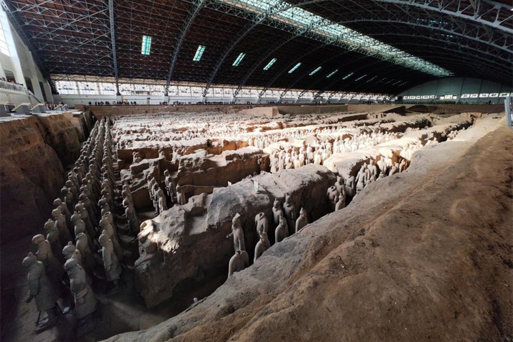 兵马俑(秦始皇帝陵博物院供图) 在陕西历史博物馆遍览文物风貌,感受扑面而来的历史内涵,在何家村窖藏中窥见盛唐的精致与华丽,通过壁画展,感受大唐风尚,欣赏大唐潮流。