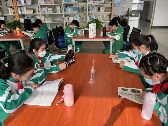 在自由阅读环节,同学们仿佛进入知识的海洋,分布在图书馆四周,畅游在书海中寻找乐趣。