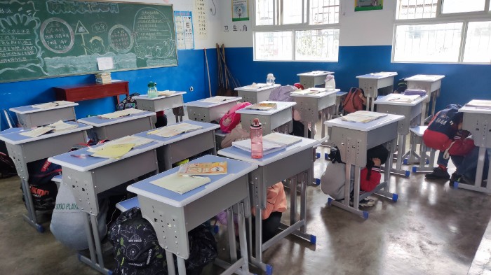 演练前,各班召开“防震逃生”主题班会,各班学生通过观看科普视频了解地震的危害,学习应急避震的正确方法。演练开始,随着第一声地震报警声(哨声模拟)响起,当堂授课老师立即告知学生“地震来了,紧急避险”,指挥学生用书、书包顶在头上或双手保护好头部躲到桌下或墙角。听到第二次口哨警报声,立即组织学生从前后门快速有序撤出,撤离期间楼道等重点区域相应责任教师迅速就位保证学生安全。学生到达紧急集合点,班主任立即清点人数,完成整个演练用时2分34秒。演练结束,校长对本次演练进行总结,希望全体师生牢记避险要领,树立生命至上意识。