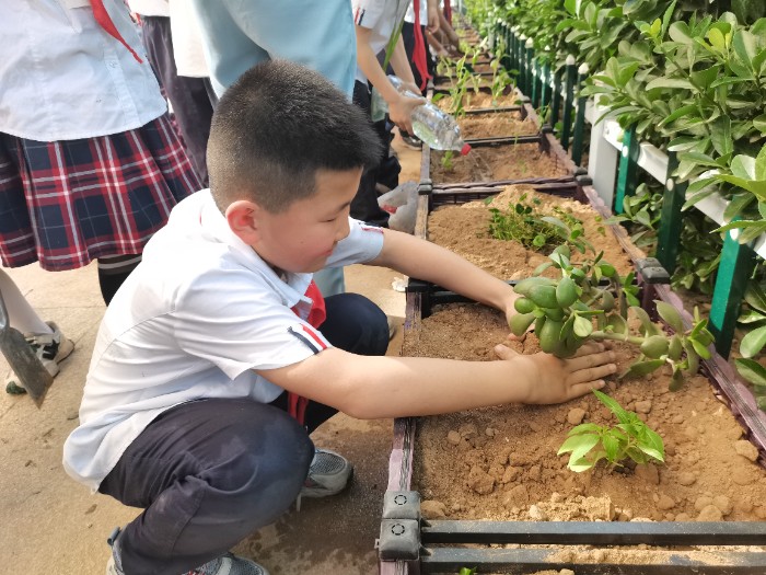 学校精心做好前期准备工作,制定方案,在楼前楼后开辟“种植园”,分为“和美种植园、和悦种植园、和润种植园、和畅种植园、和煦种植园”五个园区,实行年级负责、班级认领制,通过学生自主管理的形式,进行科学种植。
