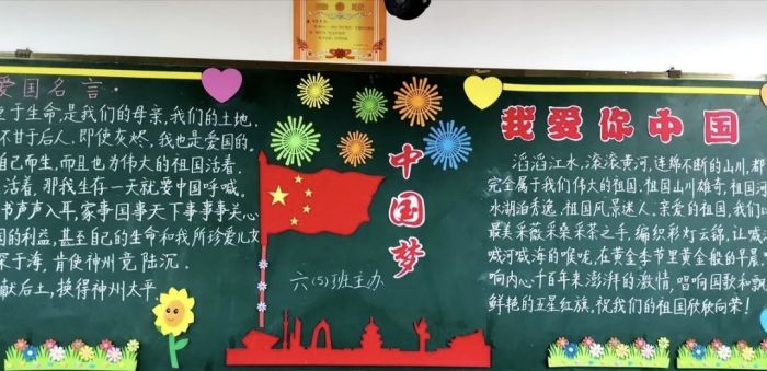 开展黑板报、绘画和手抄报展示活动。学生运用想象力和创造力,绘制一幅幅彰显爱国情怀的作品,传递正能量。 我们生在红旗下,长在春风里,我们为祖国骄傲,为祖国自豪。一系列活动凝聚着孩子们强烈的爱国主义情感与自豪感,扬帆起航,砥砺前行,让孩子们在中华文化的河流里追花逐浪。