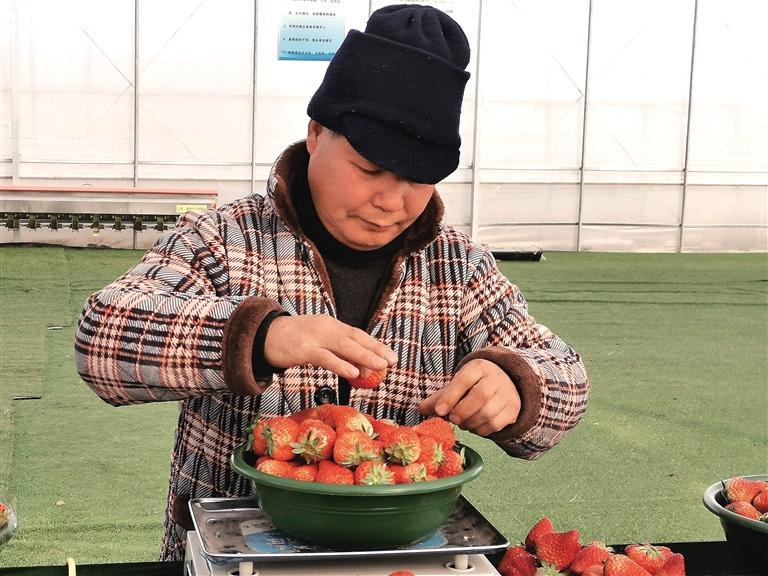 春节期间,正是草莓大量上市的时节。2月4日,兴平市阜寨镇的许多村民在草莓种植基地忙着采摘和分拣草莓,一片热火朝天的劳动景象。 “前些年的这个时候,我都在忙着走亲戚,或者在家里操持家务。自从村上建起草莓大棚,我连续两个春节都在草莓大棚里度过。忙是忙些,但每天都能赚70元,还是挺满足的。”兴平市阜寨镇高王村51岁的村民万米鸽笑着说。 每天一大早,万米鸽就和姐妹们在草莓大棚里忙活起来:升棚、摘草莓、装草莓、修蔓……新鲜采摘的草莓很快被运送到阜寨镇南佐村的分拣车间,经过分拣、包装,被运往全国各地,成为千家万户餐桌上的美食。 在从事草莓分拣工作的人群中,有一位特殊的老人,他叫钱三宝,今年65岁,来自浙江省建德市,是阜寨镇专门聘请的草莓种植技术员。“我从1989年开始在家乡种植草莓,现在我年纪大了,自己不种了,就四处走走,给别人做技术指导。”钱三宝笑呵呵地说,“从每年8月到来年4月,我都待在草莓种植基地,过年也不例外。阜寨镇的草莓种植刚刚起步,现在又到了育苗的关键期,我更要尽心才行。” 最近是草莓成熟和销售的旺季,阜寨镇的村民们都在加班加点地工作。“我们主要种植有章姬、红颜、久香3个品种的草莓,还成功培育了冰激凌、淡雪、白雪公主3个新品种。这段时间订单很多,咸阳市内各大超市、门店都在要货,每斤草莓的批发价在23元左右。我们还利用‘互联网+’销售新业态,与上海一家公司签订销售协议,实行订单生产,产品集中供应盒马鲜生、星巴克、百果园等企业,实现了产销的无缝对接。”阜寨镇草莓种植基地负责人王建军说。 近年来,阜寨镇围绕党建引领农业增效和农民增收,按照统一建设、统一栽种、统一管理、统一销售的模式,在北八一村、南佐村、高王村等地建成有1000多个大棚、占地2000亩的草莓种植基地,成为兴平市农业发展的新亮点、农民增收的“聚宝盆”,全面助推乡村振兴。 “阜寨镇目前与西北农林科技大学和陕西省现代农业科学研究院签订合作协议,按照‘党支部+公司+合作社+农户+市场’的运行模式,带动就业脱贫群众208户516人,为失地群众及闲散劳动力解决了就业问题,增加周边群众收入3800多万元。”阜寨镇党委书记庞陕维告诉记者。 “下一步,我们还将建设草莓深加工车间,通过草莓的种植和深加工推动阜寨镇三产融合发展,让乡亲们的日子像熟透的草莓一样红红火火。”庞陕维说。