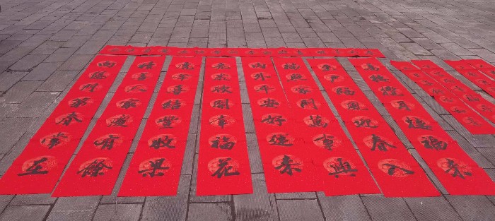 “万象更新迎百福 一帆风顺纳千祥”“欢天喜地度佳节 张灯结彩迎新春”“一帆风顺年年好 万事如意步步高”“岁岁平安福寿多 年年顺景财源广”…… 一幅幅寓意美好而又祥和的春联跃然纸上。尽管天气寒冷,但活动现场,人头攒动、热闹非凡、翰墨飘香,书法家们挥毫泼墨、奋笔疾书,将充满吉祥如意的新春祝福送给山区群众。在场的群众喜笑颜开,挑选自己喜爱的春联和“福”字。“非常感谢书法家们冒着严寒为我们写春联送祝福,过新年贴春联贴福字,图个喜庆……”方家坡村民张芝兰捧着春联高兴地说。此次义写春联活动,共为群众送出春联80余副、“福”字50余幅。