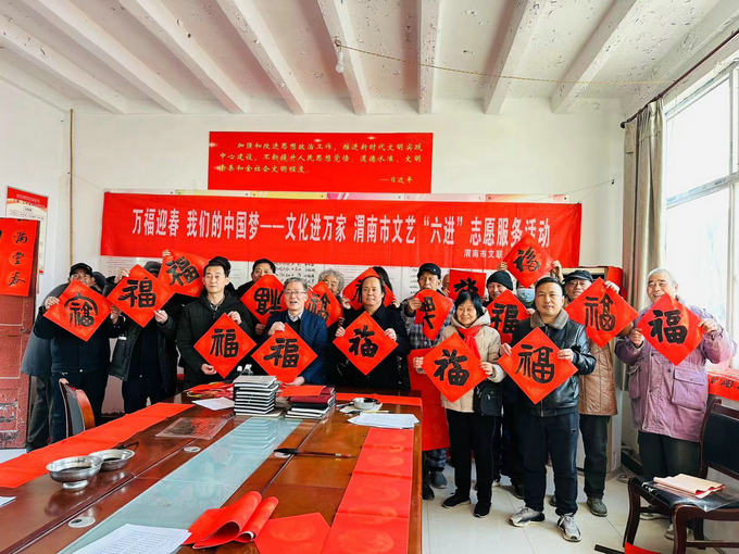 文化艺术网-文化艺术报讯(全媒体记者 高盼成 通讯员 王瑞)春节将至,年味渐浓。1月25日,由渭南市文联主办的“万福迎春 我们的中国梦——文化进万家”主题活动走进临渭区站南街道秦东社区,为居民义写春联,把文化年货送到群众家门口。
