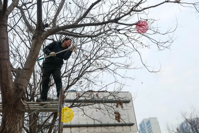 文化艺术网-文化艺术报讯(全媒体记者 高盼成 通讯员 周微娟)1月30日,在渭南高新区时代广场,工人们正在安装五颜六色、充满喜庆的彩灯,为即将到来的春节营造欢乐祥和的节日氛围。“现在有多组工人正在不同街道、广场等同时进行亮化作业。”据高新区城乡建设和管理局相关负责人介绍,今年春节亮化将呈现出内容丰富、样式新颖、覆盖广泛等特点。