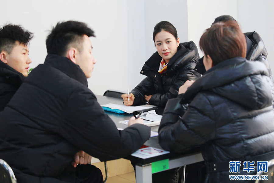在飞行前准备阶段,雷玉妍在准备室和同事们一起开航前准备会。新华网 杨喜龙 摄