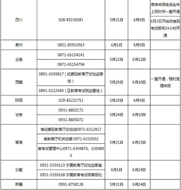 全国31省份公布高考举报电话,有的高考期间24小时接听 来源:澎湃新闻网 作者:编辑 时间:2018-06-05