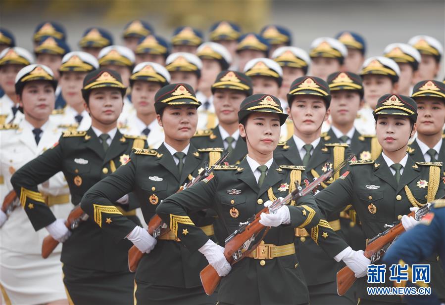 这是6月6日在欢迎仪式上拍摄的女兵方阵。三军仪仗队中首次增加女兵方阵是此次改革的一大亮点。 新华社记者 陈晔华 摄