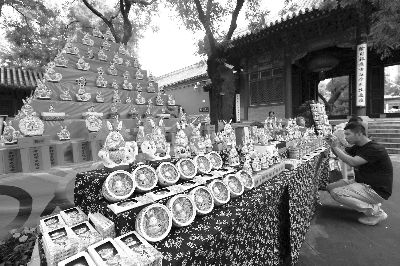 “兔儿爷山”共8层,摆放着上百个大小不同、造型各异的兔儿爷、兔奶奶。记者 陈曦 摄