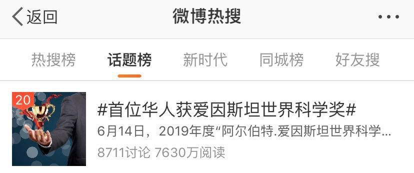 华人科学家首次获得爱因斯坦世界科学奖 来源:中国青年报 作者:陈垠杉 时间:2019-06-17