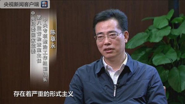 中央纪委国家监委第八监督检查室主任、中央专项整治工作组副组长陈章永:会议有传达、领导有批示、工作有督察、结果有报告。但通过深入调查,我们发现,这些传达、督察、报告当中,存在着严重的形式主义和官僚主义的问题。 从2015年2月到2018年4月,习近平总书记又针对秦岭违建别墅作过三次重要批示指示。但陕西省和西安市仍然没有做到总书记要求的“不彻底解决、绝不放手”。