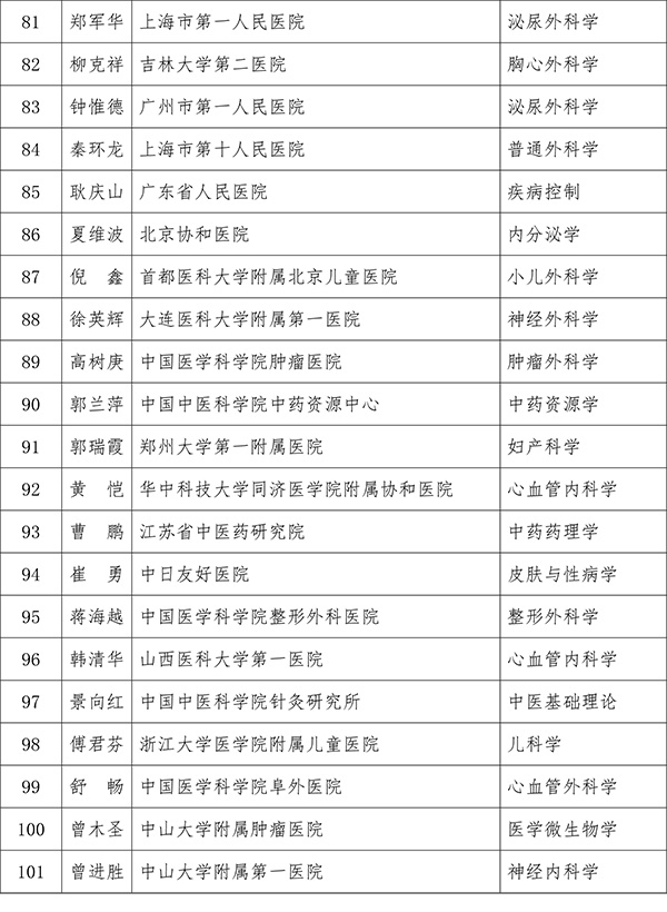 国家卫健委网站2月5日发布关于国家卫生健康突出贡献中青年专家选拔结果公示的通知。 根据《国家卫生健康突出贡献中青年专家选拔管理办法》(国卫人发﹝2015﹞47号),我委组织开展了第九届国家卫生健康突出贡献中青年专家选拔工作。经研究,现对拟当选的101名人选基本情况进行公示,人选按姓氏笔画顺序排列。公示时间为2021年2月5日至2月10日。公示期间如有异议,应实名反映情况。 联系方式:010-68792217、010-68792255(传真) 国家卫生健康委人事司 2021年2月5日