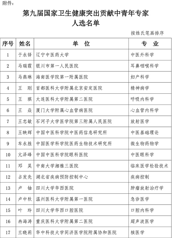 (原题为《关于国家卫生健康突出贡献中青年专家选拔结果公示的通知》) 编辑:张瑞琪 |