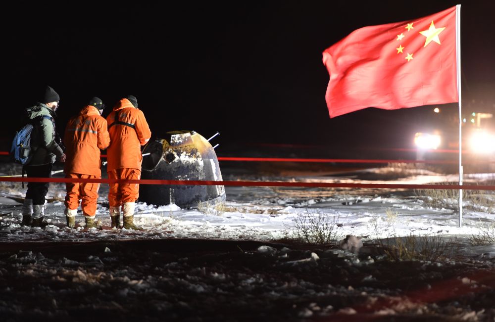 2020年12月17日,历经23天重重考验的嫦娥五号返回器携带月球样品,成功返回地面。中国探月工程“绕、落、回”三步走规划如期完成。