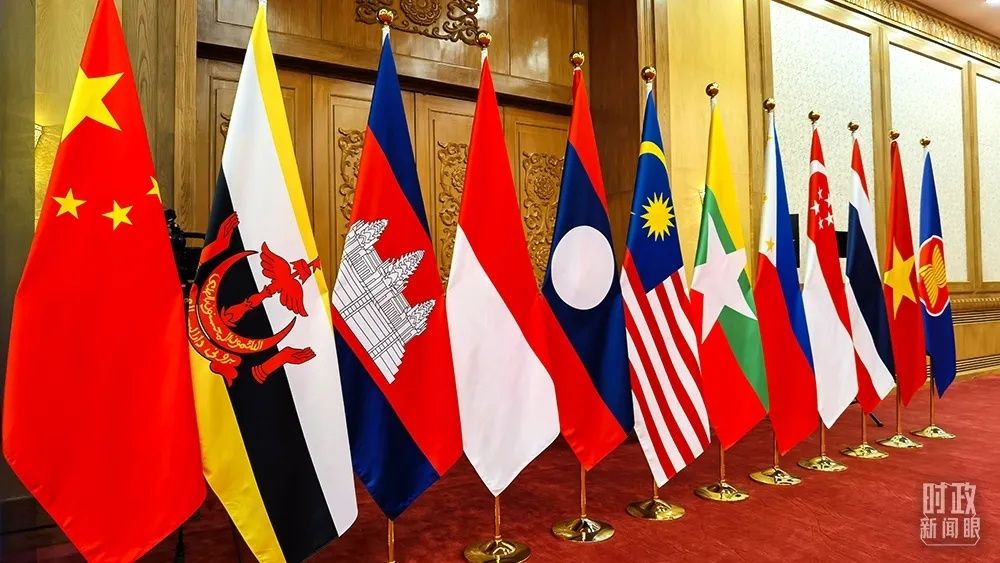 △会场摆放的中国与东盟十国国旗,以及东盟盟旗(右一)。(总台央视记者石丞拍摄) 为了铭记历史性对话,中国与东盟举办过多场纪念峰会:2006、2011、2016年,分别举办了中国-东盟建立对话关系15、20、25周年纪念峰会。 2013年10月,习近平主席在印度尼西亚国会发表演讲时,就曾回忆起时任印尼总统苏西洛2006年10月来华出席15周年纪念峰会时,在漓江上写下一首题为《宁静》的歌词: “快乐的日子,在生命中不断循环,我与伙伴,共同度过那美好时光。”