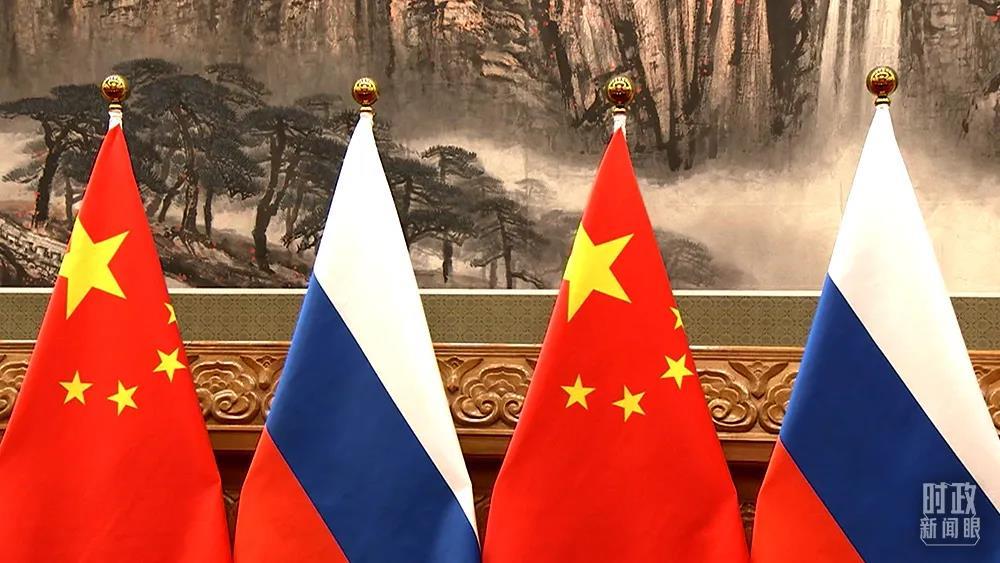 △人民大会堂,视频会晤现场摆放的中俄两国国旗。(总台央视记者郭鸿拍摄) 从2019年6月至今,两年半时间里,两国元首的会晤次数从近30次增至37次。《时政新闻眼》梳理发现,最近一次线下会晤是2019年11月13日。金砖国家领导人第十一次会晤期间,两国元首在巴西首都巴西利亚举行会晤。 普京总统明年2月访华,将是阔别两年之后的首次线下会晤。另一个数据是,疫情发生以来,中俄元首已经6次通电话。