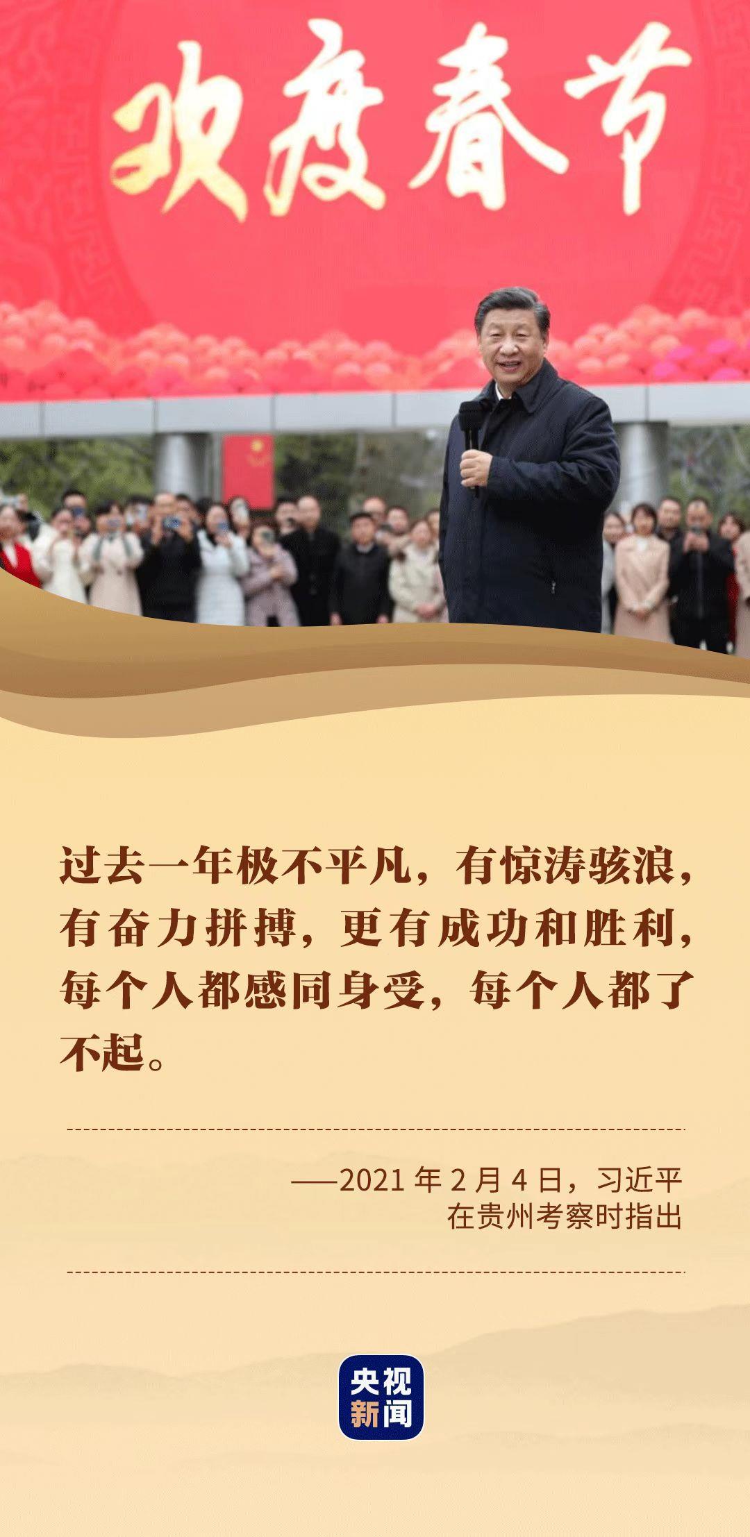 又一年岁末。 “同往常一样,我无论多忙,都要抽时间到乡亲们中走一走看一看。” 这一年,习近平总书记又去了很多地方——从多彩贵州到闽山闽水,从八桂大地到南水北调中线渠首,从青藏高原到美丽的高岭,从黄土高原到黄河尾闾……都留下了他繁忙的身影。 这一年,他看望了很多人—— “我很牵挂你们。” “我们是人民的勤务员,这句话不是一个口号,我们就是给老百姓做事的。” “等这一批小家伙长大的时候,我们的国家又不一样了。” …… 这一年,他用脚步丈量祖国大地,带领全党全国人民昂首走在实现民族复兴的大路上。
