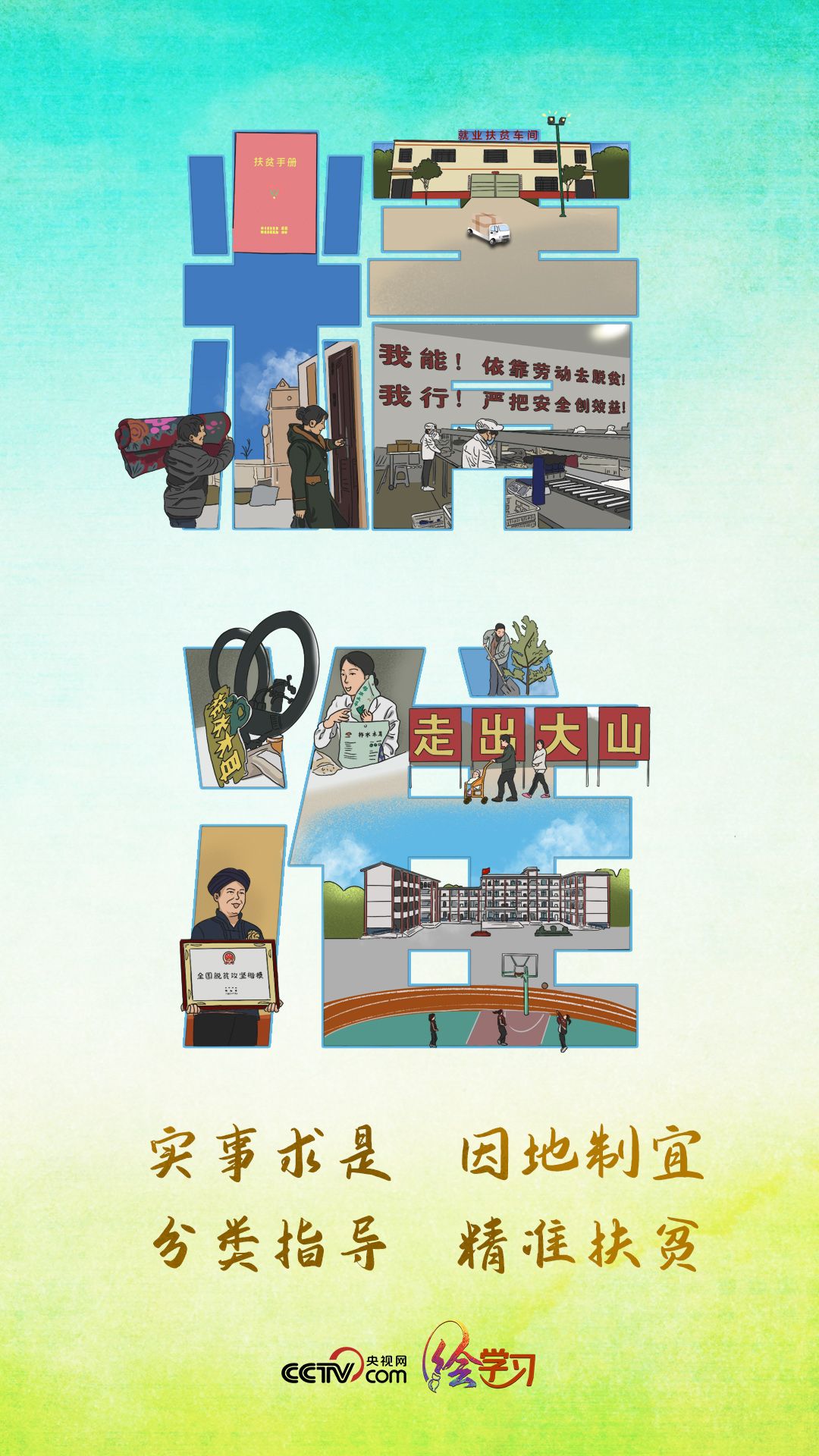 总书记的“精准扶贫”思路,就是要帮助每一个贫困县、每一个贫困户摸索出一条适合自己的脱贫致富之路。 2015年,中央扶贫开发工作会议召开,吹响了打赢脱贫攻坚战的冲锋号。一场史无前例的 “精准”之战在中华大地打响。 党的十八大以来,总书记50多次调研扶贫工作,走遍14个集中连片特困地区。在老乡家中,总书记一次次查看扶贫手册,“移民直补”“公益林补贴”“计生奖”“劳务收入”,他细致询问贫困群众的收入和支出,同老乡一起盘算脱贫致富门路。 不止贫困户的收入支出账,全国到底有多少贫困人口,能否精确到一家一户,这本账更要算清楚。按照总书记指示,一项贫困人口建档立卡工作在全国展开。正如总书记所说,“情况搞清楚了,才能把工作做到家、做到位”。 瞄准全面建成小康社会目标,总书记引领全国找“药方子”,拔“穷根子”。“五级书记”一起抓扶贫,因村因户因人施策,因贫困原因施策,因贫困类型施策,对症下药、精准滴灌、靶向治疗。 在易地扶贫搬迁村,总书记殷切叮嘱:“移民搬迁是脱贫攻坚的一种有效方式。移民搬迁要充分征求农民群众意见,让他们参与新村规划。”