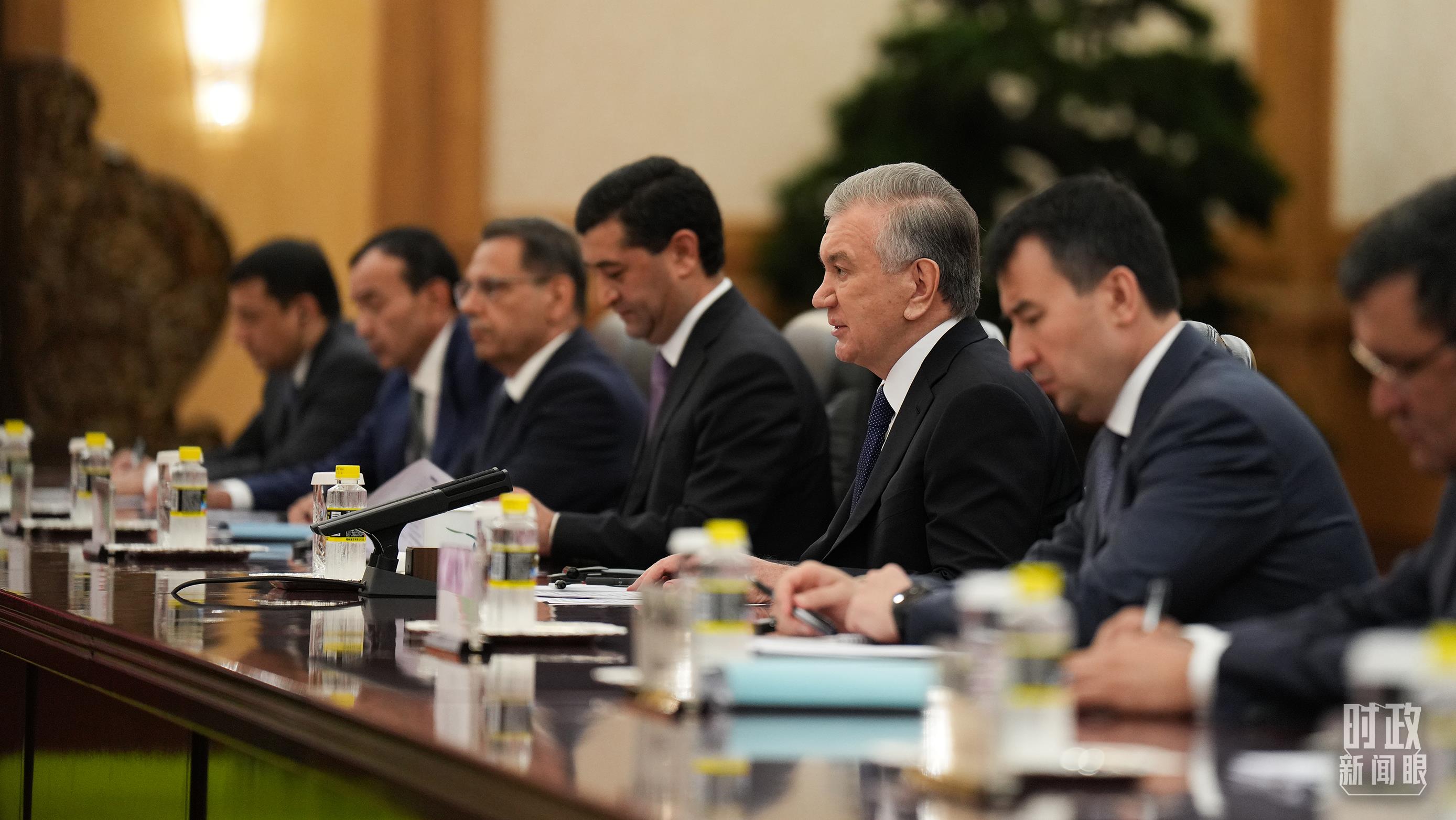 △乌兹别克斯坦总统米尔济约耶夫。(总台记者李晋拍摄) “全球治理倡议”是高频词。 今年是习主席提出共商共建共享的全球治理观10周年,也是全球治理的“大年”。在2日的会谈会见现场,习主席在前一天提出的全球治理倡议成为高频词,多国领导人表示支持并愿推动落实。 马来西亚总理安瓦尔表示,习主席刚刚提出的全球治理倡议,直面全球治理面临的问题,既有先进的理念,又有切实的问题解决方案,对提高全球治理水平意义重大。 伊朗总统佩泽希齐扬表示,习主席提出全球治理倡议,伊方完全支持,愿同中方密切协调,共同反对单边主义和强权政治,维护中东地区和平稳定,推动全球治理倡议落地落实。