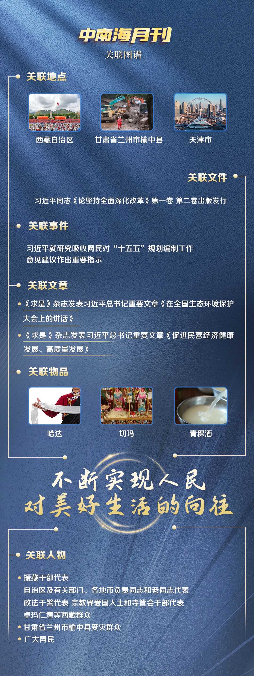 “中国式现代化,民生为大。” 观察央视网“I学习”数据库生成的8月关联图谱,从防汛救灾保安全,到问计于民谋发展,再到治边富民促团结……总书记的一系列指示、要求,无不蕴含着人民至上的执政初心。 8月7日,甘肃兰州市榆中县等地遭遇连续强降雨引发山洪灾害。习近平总书记高度重视并作出重要指示,要求“千方百计搜救失联人员,转移安置受威胁群众,最大限度减少人员伤亡,尽快恢复通讯和交通”。 根据总书记的重要指示,应急管理部紧急调派专业力量,携带卫星指挥车、边坡雷达、生命探测仪、排涝车等救援装备赶赴受灾现场,开展救援工作。