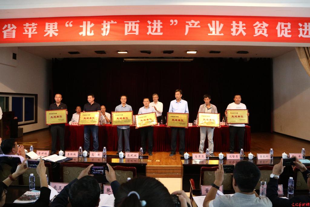 省果业局局长高武斌指出;此次全省苹果“北扩西进”产业扶贫促进会,既是一次现场观摩会、技术培训会,又是一次工作推进会。此次会议旨在促进我省苹果“北扩西进”战略持续实施,加大山地苹果发展力度,优化布局规范管理,提质增效,帮助老区人民脱贫致富。他讲到,近年来,全省各级果业部门积极实施苹果“北扩西进”发展战略,苹果已发展成面积千万亩、产量千万吨、产值千亿元、覆盖果农千万人的大产业,形成了“一个产业链脱贫一千万”的格局。去年全省果业增加值达到432.5亿元,占到农业增加值的32.2%。全省56个贫困县,其中果业基地县占到2/3,基地县果农80%的收入来自果业。他要求,作为“3+X”千亿主导产业之一,苹果将迎来又一次发展机遇。发展苹果产业,“北扩西进”战略是主线,山地苹果是重点。各级果业部门要突出重点抓落实,聚集资源显优势,夯实责任求实效。要持续优化区域布局,大力强化技术支撑,切实加强绿色发展,积极打造知名品牌,不断促进产业融合,切实抓好当前生产管理。既要着眼于眼前,集中精力把苹果后期管理工作抓实抓好,还要兼顾长远,提早谋划2019年工作,把底子筑牢打实。他讲到,眼下正是苹果生产的关键时期,各地要组织动员果农扎实开展果园管理的各项工作,引导果农适时采收,坚决防止早采早卖,保证果品优质丰收,为全面推进我省现代果业强省作出更大贡献。 会上还对全省苹果“北扩西进”推进中表现突出的印台区果业管理局等15个先进单位和赵剑等30名先进个人进行了表彰奖励。 会后,西北农林科技大学园艺学院院长马锋旺教授就陕西苹果优势、机遇与挑战,陕西山旱地苹果产业转型升级存在的问题与对策等内容进行了专题授课。
