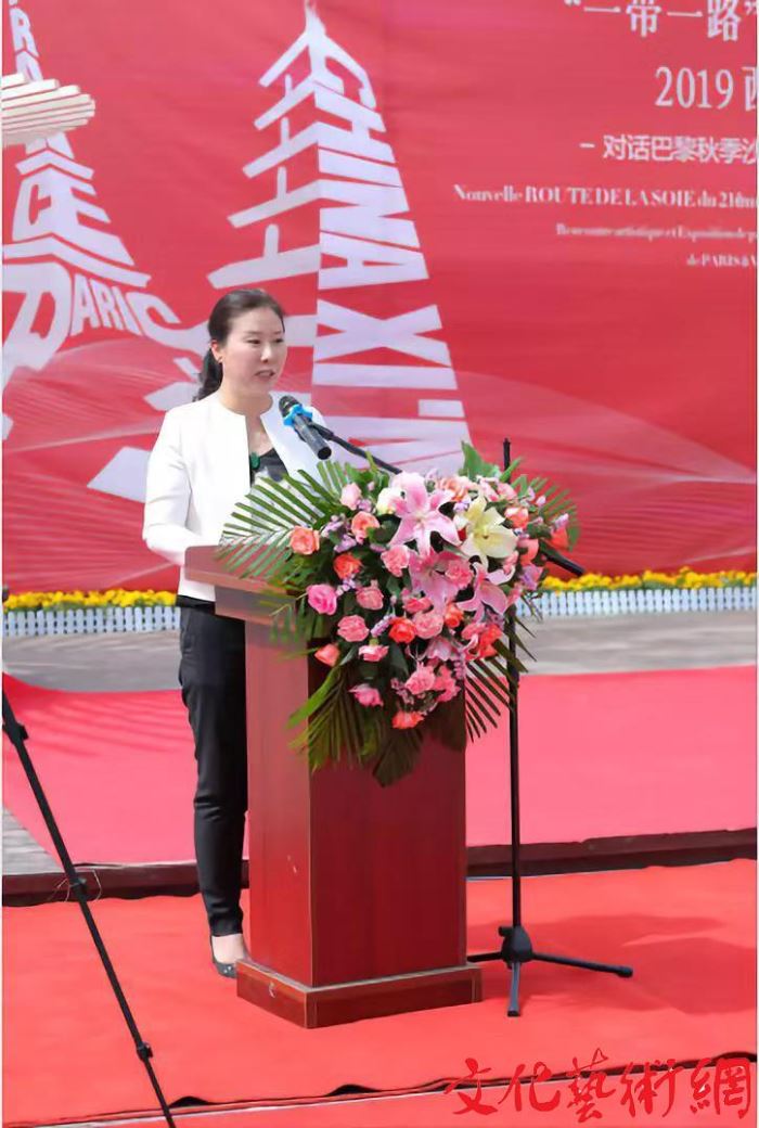 陕西美术事业发展基金会理事长,陕西空港美术城发展有限公司董事长朱小艳女士致欢迎词,在经过多年酝酿和一年多的策划、组织、沟通,在完成大量富有挑战性的前期工作之后,今天,我们终于迎来了这场期待已久的艺术盛宴。这是陕西乃至全国美术界的一次盛会,也是促进中法文化交流合作,增进中华文化与世界文化交流互鉴的一次盛举。 文化是一个国家、一个民族的灵魂。没有高度的文化自信,就没有文化的繁荣兴盛,就没有中华民族伟大复兴。书画艺术是中华传统文化的重要组成部分,绘画更是世界共通的美的艺术。作为国内首家专注于美术事业的地方性公募基金会,陕西美术事业发展基金会成立至今的8年多来,始终秉持助力文化自信的理念,为“推动陕西建设美术强省,推动陕西美术事业发展”不遗余力。多年来,陕西美术前行发展的每一次重要活动、每一项瞩目成绩背后,都有陕西美术事业发展基金会默默支持的身影。 东方文明与西方文明的交汇已经有着数百年的历史,如今,文化艺术早已跨越地域的限制,交融成为常态,这次巴黎秋沙的西安展既是东方文明与西方艺术历经百年文脉演变后的一次碰撞和交融,还是一次对2018年1月法国总统访华首站来到西安的呼应。