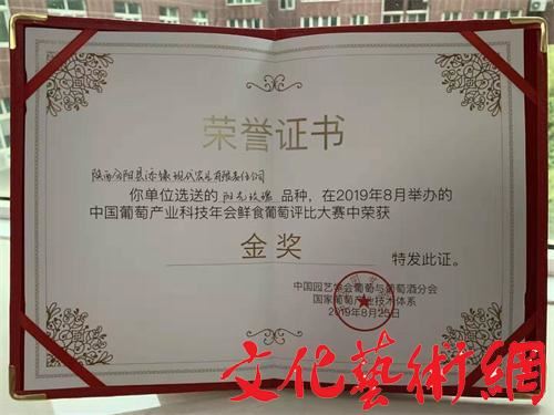 文化艺术网-文化艺术报讯(通讯员 任云锋)8月26日,从2019年中国葡萄产业科技年会上传来喜讯:陕西省渭南市合阳县添缘现代农业园区种植的“阳光玫瑰”葡萄喜获全国葡萄产业体系评比金奖。