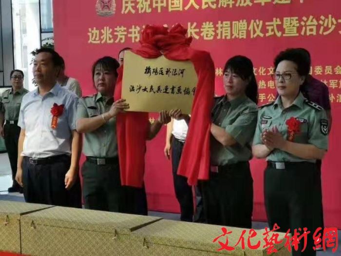 文化艺术网-文化艺术报讯(记者 刘燕郡 惠刘艳)7月30日上午,建军92周年书画摄影展览暨边兆芳千米书画长卷捐赠、治沙女民兵连书画协会成立纪念活动,在榆林市档案馆举行。此次活动由榆林市委宣传部、市文联、市政协文化文史和学习委员会、武警榆林支队、市档案馆、中国邮政储蓄银行榆林市分行、榆能榆神热电公司,榆林军旅书画家协会、女子书画家协会共同举办。