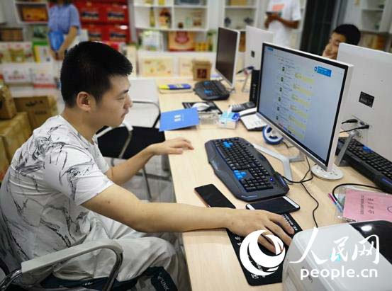 图为扶贫超市里的农产品。人民网记者 王宇鹏 摄 玩转互联网,孙阳很有灵气。他策划原创视频发布到抖音上,不到一个月便吸粉超过三万,一条视频的点赞数量动辄20-30万。靠着自身人气和运营思路,孙阳经手的农货总不愁卖。瀛湖的枇杷一度滞销,只能烂在地里,孙阳通过电商义卖活动将其推广,不到两周时间就把全村10万余斤枇杷销售一空,带动每户增收6000元。 孙阳办公的安康扶贫超市里,货架上摆满了当地农特产品,大多是从当地农户收购而来,经过加工、包装,通过电商渠道售卖。近年来,汉滨区投入500多万元建成互联网产业园1个,区级电商运营服务中心2个、镇级电商服务站22个、村级电商服务点70个。 尤其是村级电商服务点的设立,相当于把销路铺到农户家门口。九里湾村民王兴志家种植的皱皮橘柑喜获丰收,年过古稀的他与老伴却没有劳力采摘,更无法一担担挑到城里去卖。王兴志与电商收购点达成收购意向,看着柑橘被一箱箱搬上车,终于松了口气。 农户变农商 学习技能主动扩展销路 21岁的赵鑫宇同样患有脑瘫,下肢萎缩、行动不便。一次,他从电视节目里看到孙阳的故事,很受鼓舞,从山东东营来到陕西安康,要和孙阳一样从事电商。与此前毫无电商经验的孙阳不同,赵鑫宇毕业于电子商务专业,开过网店,卖些工艺品,却因不善经营只好放弃。