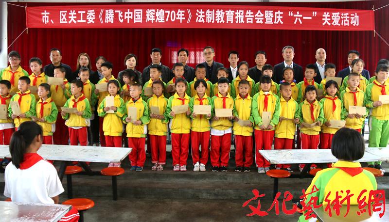 文化艺术网-文化艺术报讯(通讯员 王毅)5月28日上午,由市、区关工委联合举办的《腾飞中国 辉煌70年》法制教育报告会暨庆“六一”关爱活动在渭南经开区龙背中心学校举行。市关工委副主任、市关工委法制报告团团长张建中一行出席活动,区党群工作部部长胡兆林陪同。区关工委、教育局、龙背街道办主要负责人参加活动。