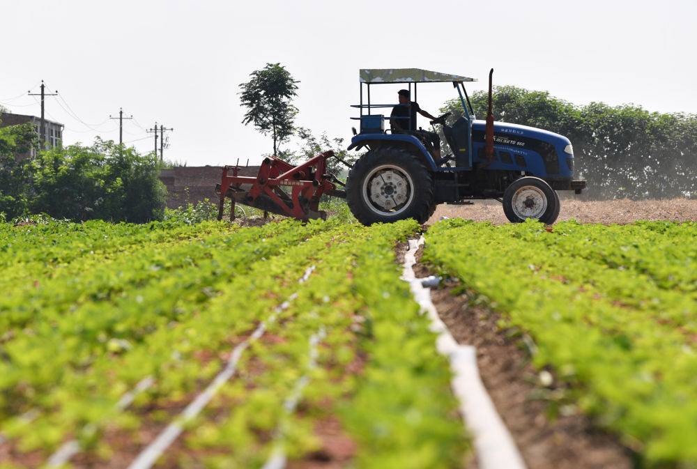 6月13日,在陕西省西安市鄠邑区五竹街道,农机手驾驶农机在田间忙碌。 近日,在位于关中平原的陕西省西安市鄠邑区,农户在麦收后抢抓农时开展夏种夏管,田间地头一派忙碌景象。 新华社记者 张博文 摄影报道