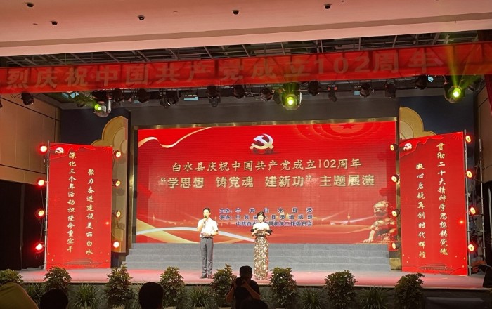 文化艺术网-文化艺术报讯(全媒体记者 高盼成)7月4日,渭南市白水县举行庆祝中国共产党成立102周年“学思想 铸党魂 建新功”主题展演。白水县委书记王宏运,县政协主席杨进宏及陈维军、李立锋、白涛、胡小英、李小剑、刘建军等出席活动。
