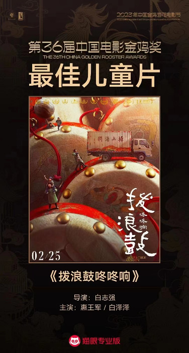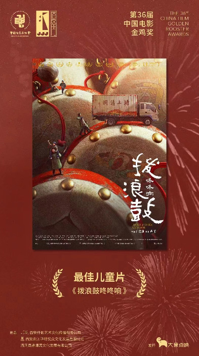 在本届金鸡奖期间,《拨浪鼓咚咚响》同样表现亮眼。先是获得5项评委会提名,包括“最佳儿童片”“最佳导演处女作”“最佳男主角”“最佳摄影”“最佳剪辑”等,最终在4部“最佳儿童片”提名中脱颖而出。 白志强领奖时幽默地把折叠的致谢词打开,长长的几页,逗得场下观众笑声一片。他说:“虽然《拨浪鼓咚咚响》是一部小成本电影,但是我们投入了巨大的热情。今天能把这样一个奖颁给我们,相信会激励更多和我一样热爱电影、追逐梦想的青年导演奋力前行。”