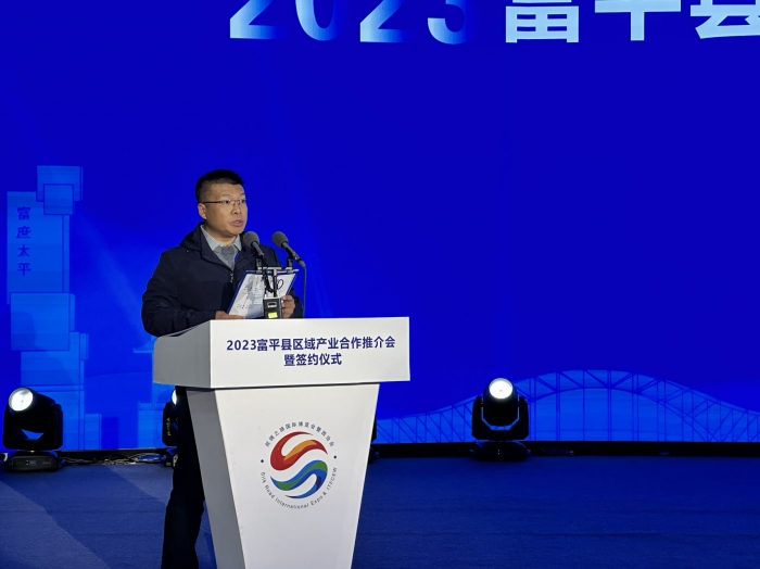 富平高新区管委会党工委副书记、管委会主任郑永鹏介绍该区投资优势,推介重点项目