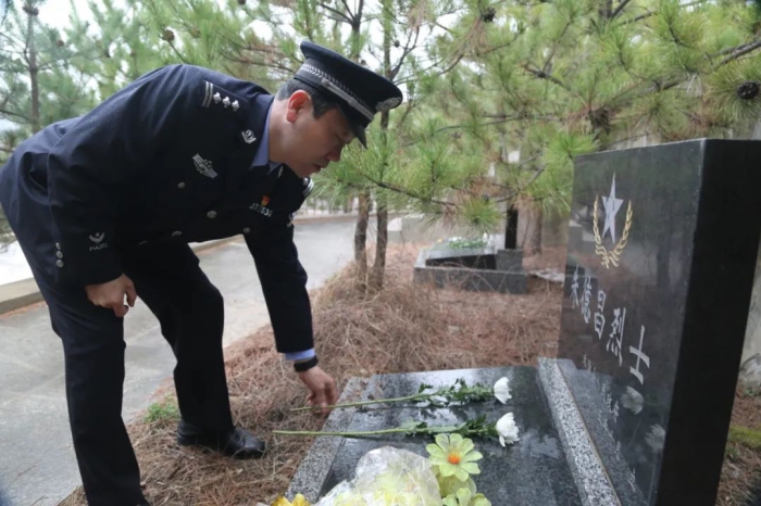 在烈士陵园内,全体民辅警整齐列队,默哀致敬,敬献花篮,对烈士陵墓进行瞻仰并逐一献上鲜花。张崇飞同全体民辅警一起深切缅怀了革命烈士的丰功伟绩,并勉励大家要传承革命先烈精神,牢记使命,敢于亮剑,时刻维护人民群众的利益和安全。