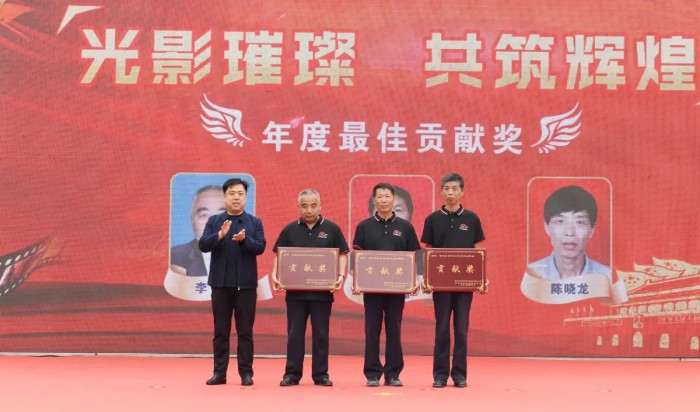 仪式现场,蒲城县文化和旅游局党组成员惠双锋宣读了表彰决定;渭南市新创农村数字电影院线有限公司副总经理孙涛同志致贺词;蒲城县电影公司、数字电影服务站经理蒋宏岗作了表态发言;活动为2023年度服务基层先进个人、2023年度最佳贡献奖、2023年度最美放映员获奖者颁奖。与会领导共同启动活动。