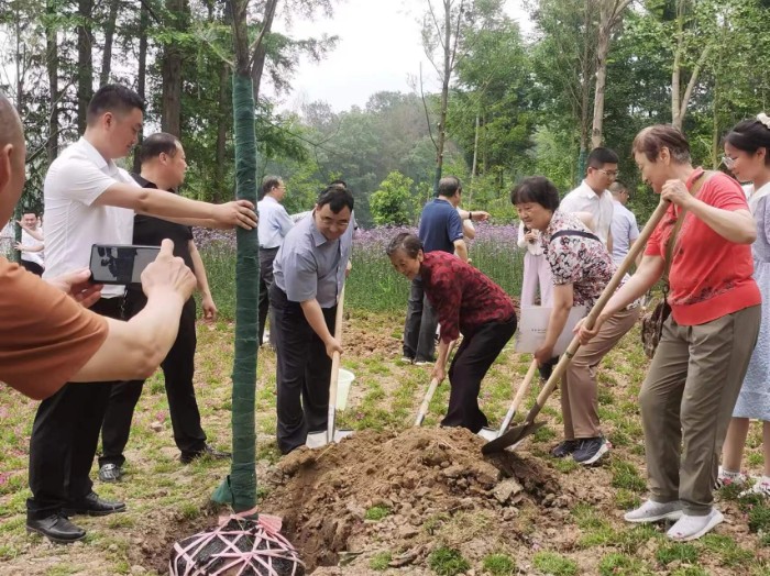 落成典礼结束后,参加活动的江氏族人、各级领导和嘉宾还在“隆基林”种下了一棵棵象征表思念和敬仰的红豆杉。之后,一行去隆基中学进行了参观和座谈。