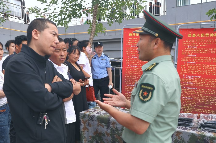 文化艺术网-文化艺术报讯(全媒体记者 李娟娟 通讯员 康亮亮 李晓)“高中毕业生参军视力要求是多少”“高中生到部队考军校有什么要求”“孩子录取后当兵如何保留学籍”……在榆林市佳县高考考点外,不少人带着一个个疑问向佳县征兵工作人员咨询。 6月7日,佳县征兵办以高考为契机,在考点外围组织开展征兵宣传活动,旨在向高考考生发出投身军营的“邀请函”,打好征兵工作主动仗,为部队输送优质兵员。