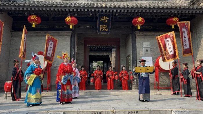 槐院里历史文化街区大型实景演绎《状元御街夸官》巡游,生动再现了古时状元荣耀时刻,人气爆棚,成为了今年蒲城文旅新亮点。流行音乐、综艺节目、古风演出、京剧变脸、民俗表演、华山戏法、戏曲杂技、机甲武状元轮番上演,小小讲解员也彰显新名片。蒲城县中心文化广场七天不停歇,每晚开展“盛世华章 国韵秦风”市县剧团戏曲展演,活动现场人山人海。