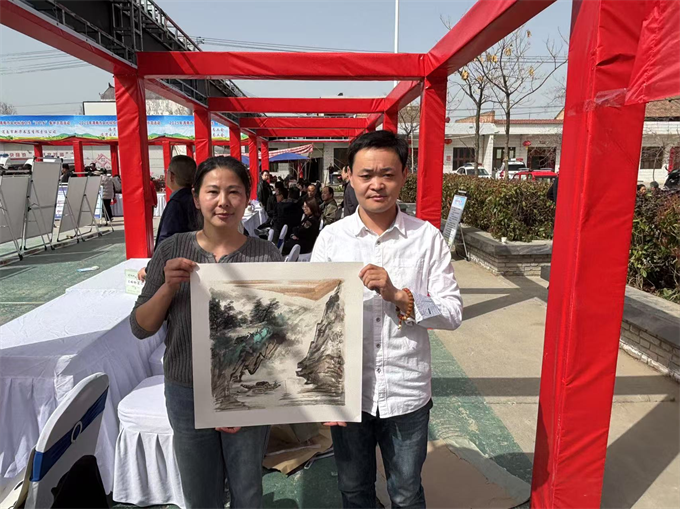 活动现场,市文联开展的义写书画活动人气爆棚。义写书画服务台前被围得水泄不通,百余名群众将这里挤得满满当当。志愿者们铺开宣纸,饱蘸浓墨,笔锋游走间,一幅幅寓意吉祥的书法作品跃然纸上。“鸿福厚德”“敦诗悦礼”等美好祝愿的字词,引得围观群众阵阵赞叹,大家纷纷排队,期待能获赠一份心仪的墨宝。市美协的文艺志愿者现场挥毫泼墨创作绘画作品,花鸟鱼虫、山水风景在他们的笔下栩栩如生,为当地村民们的生活增添了艺术色彩。