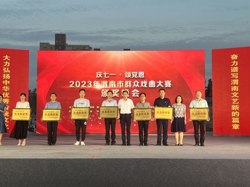 文化艺术网-文化艺术报讯(全媒体记者 高盼成)6月29日晚,由中共渭南市委宣传部、渭南市文学艺术界联合会、中共蒲城县委、蒲城县人民政府共同主办的庆七一·颂党恩2023年渭南市群众戏曲大赛颁奖晚会在蒲城县中心广场举行。